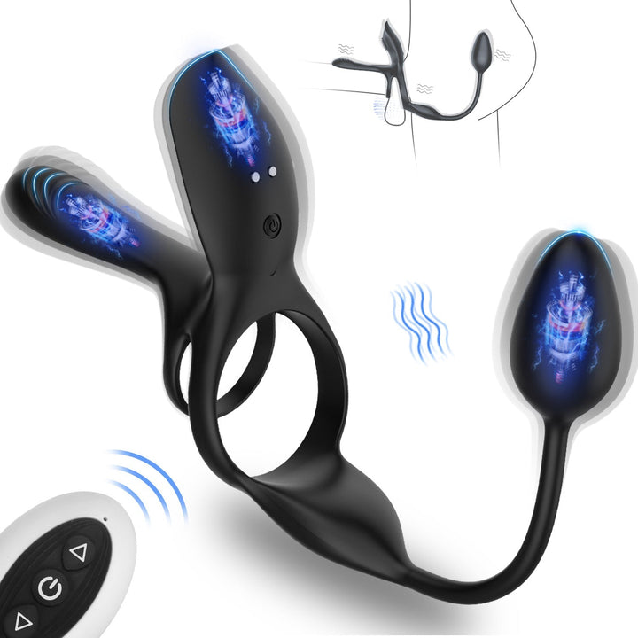 3 in 1 Male Sex Toy Our male sex toys combines vibrating penis ring, anal plug vibrator and prostate massager. Cock ring vibrator work to limit blood flow which may enhance erections. Vibrating Butt plug anal beads is perfectly formed to massage the prostate or use anal toys to stimulate the clitoris and nipples. Textured perineum tickler bridges the gap between penile and anal sensations for all-encompassing bliss. This unique sexy toys couples vibrator that's great for couples' play.
